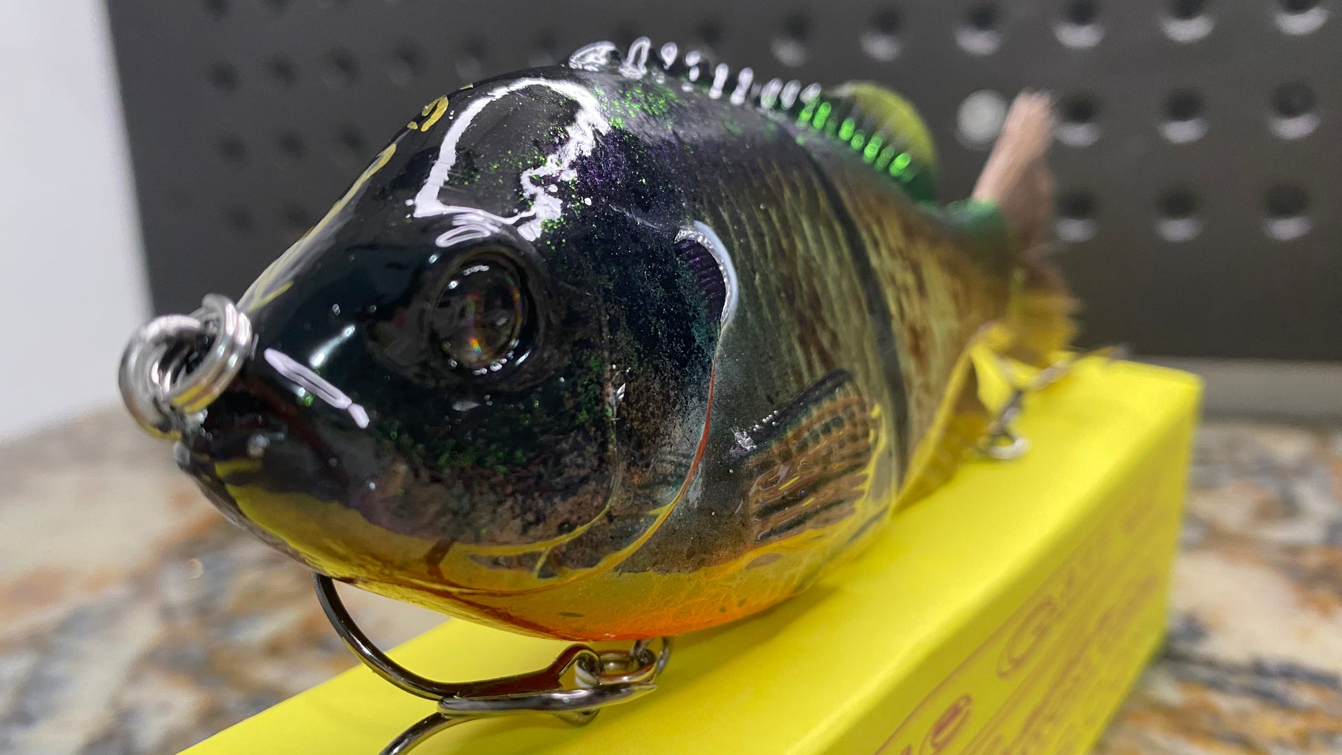 swiveling front and rear hook hangers. Colors shift depending on the light or angle. KVD Mustad Hooks