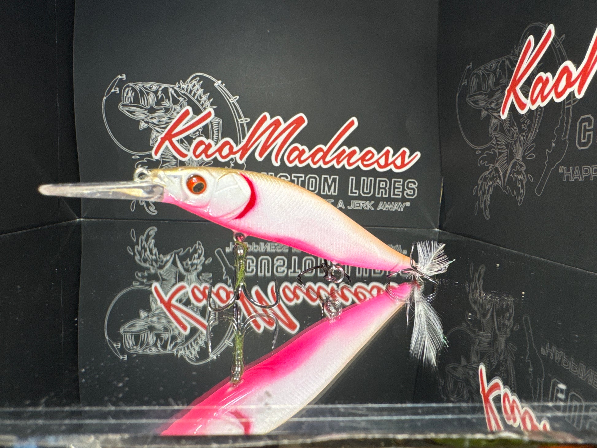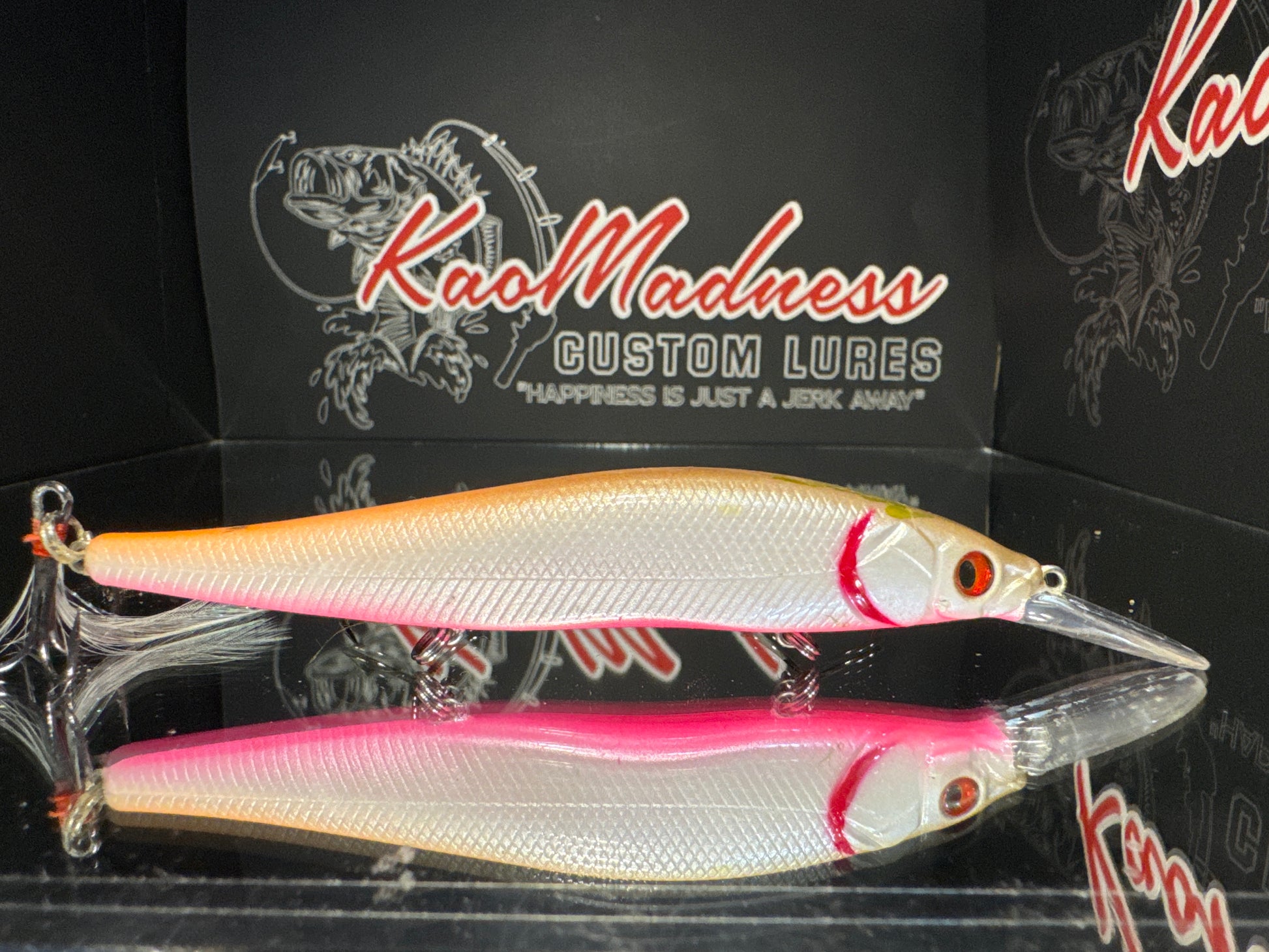 Diving dept: 7'-9' length: 5 1/2" weight: .6oz slow rising, steel ball rattle, kvd mustad hook or mix with a high carbon steel feather hook at the tail end. Must like my immortality lures this one is no different except it a deep diver. This one is a fish catcher. check it out my YouTube: Kaomadness custom lures,