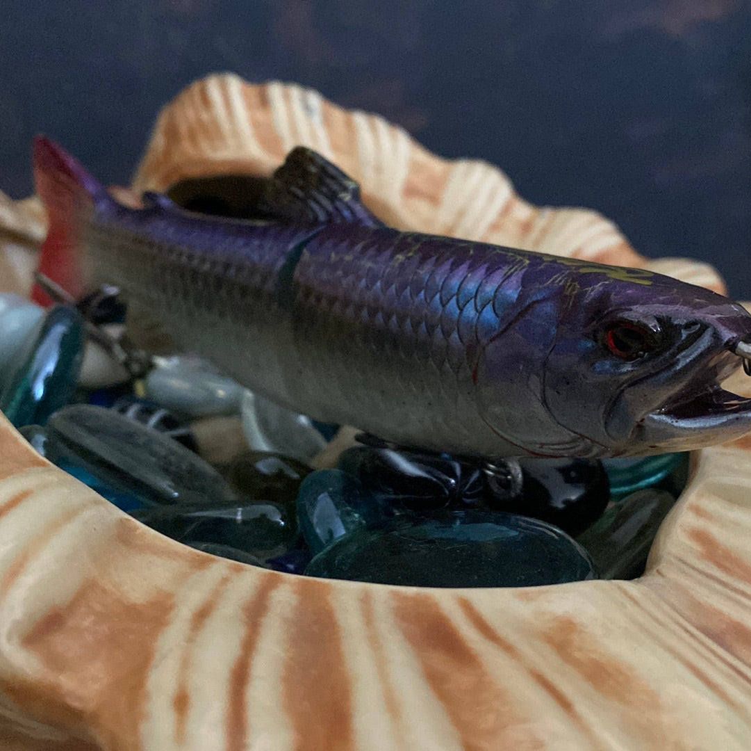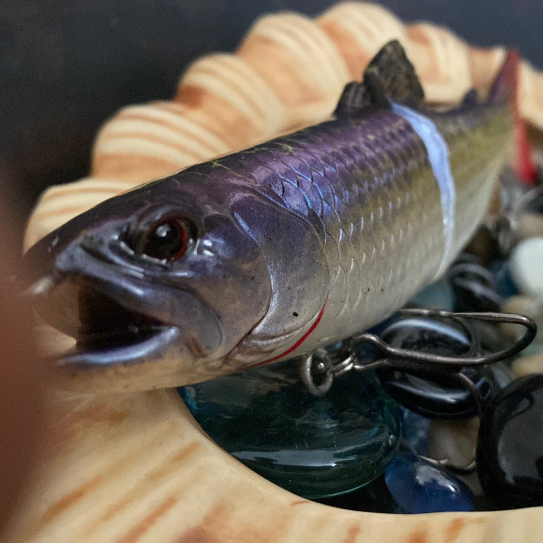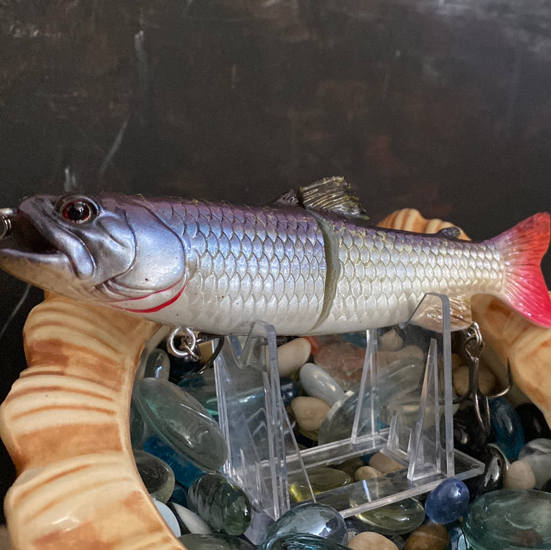 scales wag, 6", 1.5 oz slow sinking glide bait, Steel balls rattle. Mix of fluorescent and shifting paints. KVD Mustad hooks