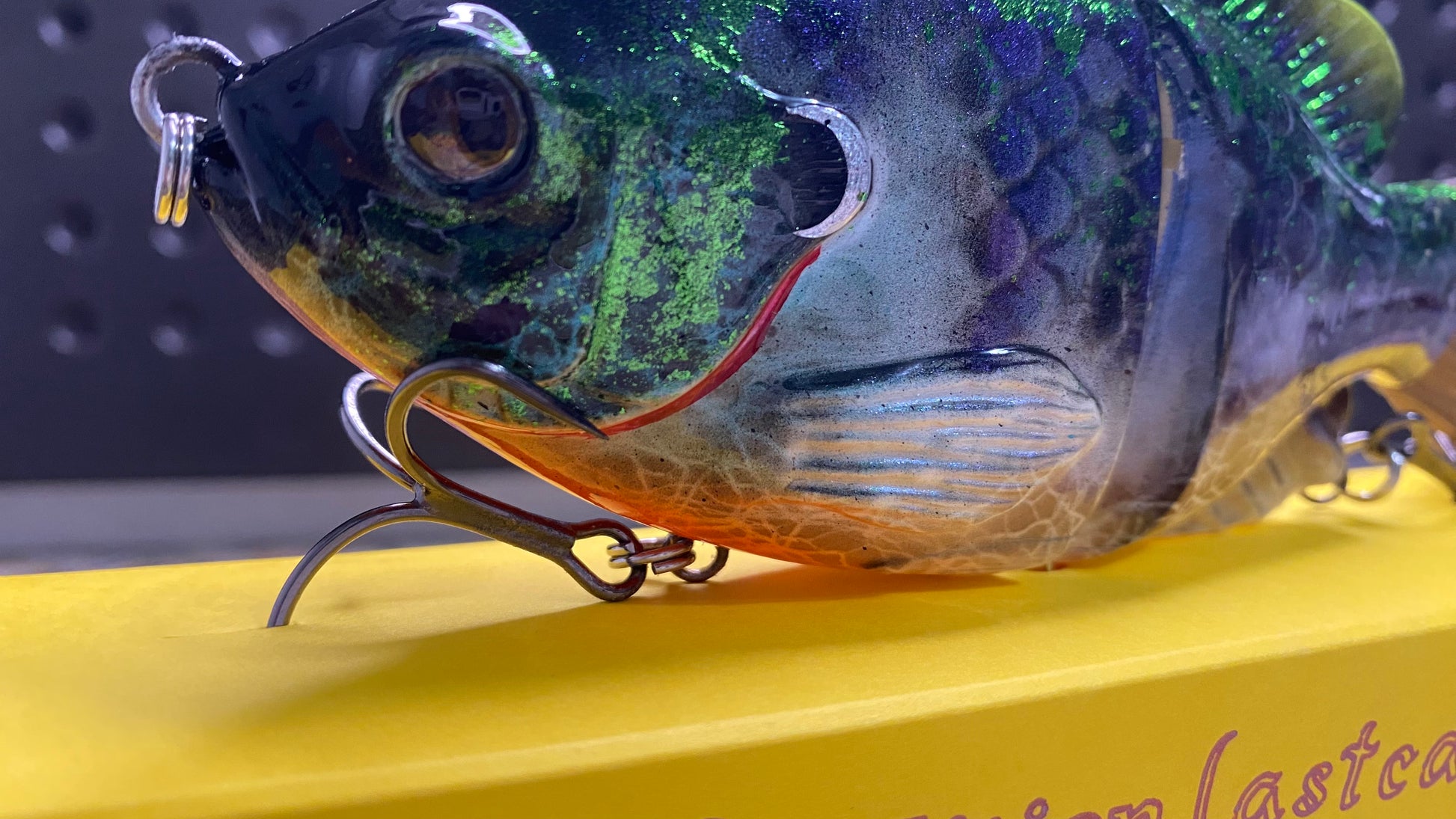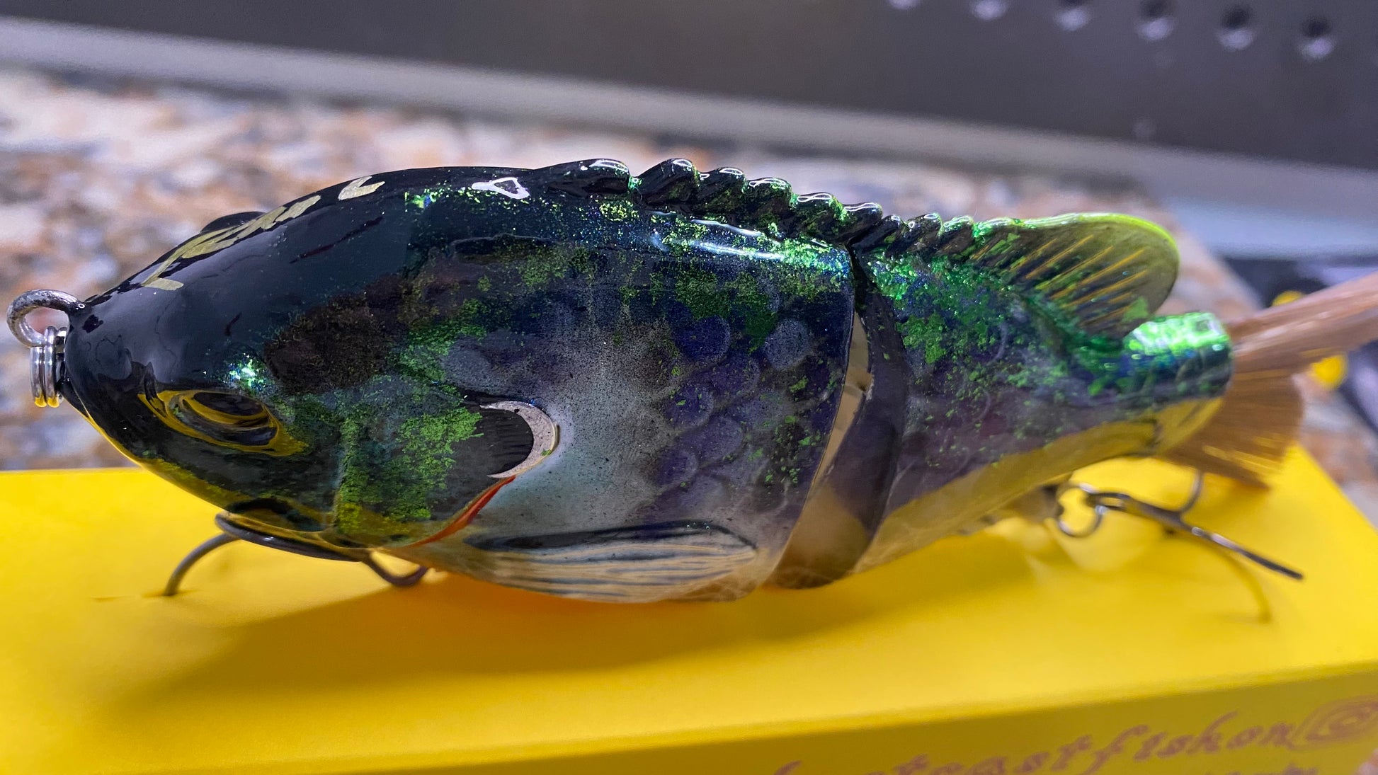 swiveling front and rear hook hangers. Colors shift depending on the light or angle. KVD Mustad Hooks